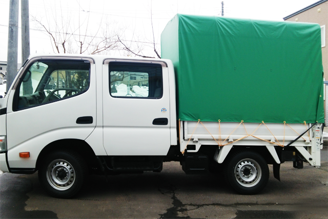 軽トラックの上部幌からウィング車張り替えまで、自動車の幌ならお任せください!小さな破れの補修なども対応いたします。